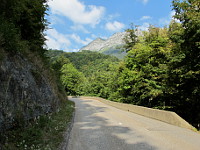 Die Ostrampe des Col de la Forclaz ist sehr verwinkelt, die Straße dabei meist nur 1,5 Spuren breit. Blick auf den Lac d'Annecy gibt es dort absolut keinen, was mich etwas überrascht hat. Der kann dafür bequem von der Passhöhe aus genossen werden, die jedoch meist gut besucht ist. Die Nordrampe ist in der oberen Hälfte sehr steil und geht durch dichten Wald, der den Blick ins Tal meisten blockiert. Untenrum wird es dann offener und die Sicht ist wieder frei.