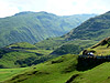 Die beste Aussicht von unten auf das Tal, den Ex-Gletscher und die Furka-Westrampe hat man in der ersten Kehre hinter der langen Geraden, die parallel zum Talfluß nach Westen führt.