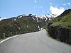 Anschließend beginnt die nur 11 Kilometer lange Westrampe, von der man jeden Meter genießen sollte. Nur einen Katzensprung von der Passhöhe entfernt erreicht man nach ein paar kleinen Schlenkern eine Stelle, von der aus man fast die ganze Westrampe auf einen Blick vor sich hat, das Tal und den Zielort Gletsch noch dazu.