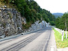 Marchairuz - Westrampe obenAuf der anderen Seite trifft man erneut auf die niedrigen Begrenzungsmauern, allerdings ist der Belag nicht mehr so gut zu fahren wie noch zuvor. Zudem sind im oberen Teil längere Geraden zu durchfahren, die aber wegen der schön anzuschauenden Landschaft nicht weiter stören.