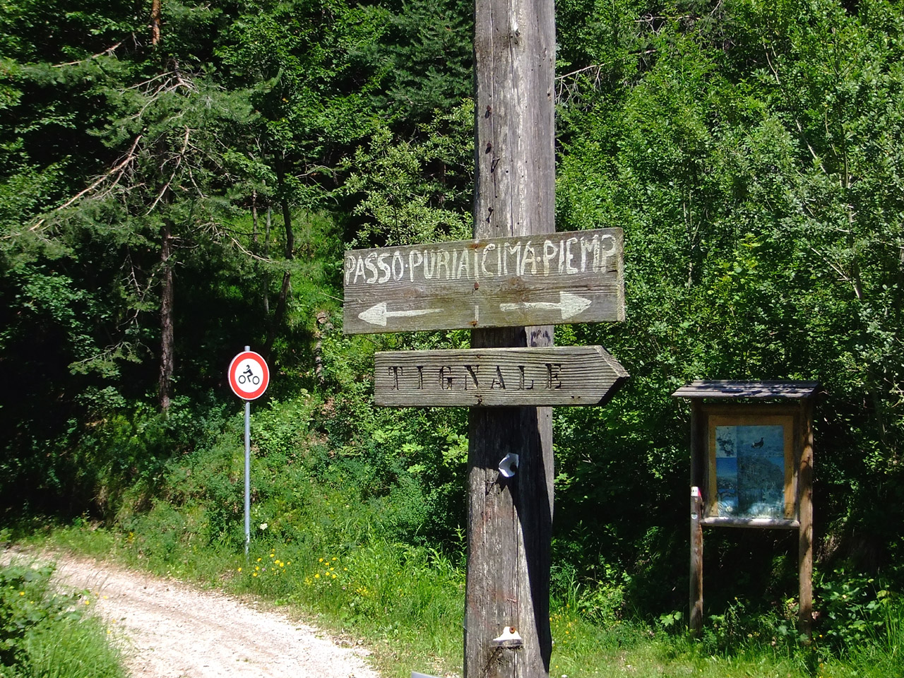 Die Einfahrt des Puria(i) ist auf der Passhöhe des Erè(i) zu finden. Leider gleich zu Beginn auch das unfreundliche Schild, das Mopedlern die Weiterfahrt verbietet.